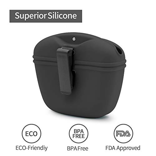 SENDR.KR Borsa per cani in silicone per addestramento cani, borsa per cani, borsa per cibo per cani, borsa per cibo portatile con chiusura magnetica e clip per la vita (nero)