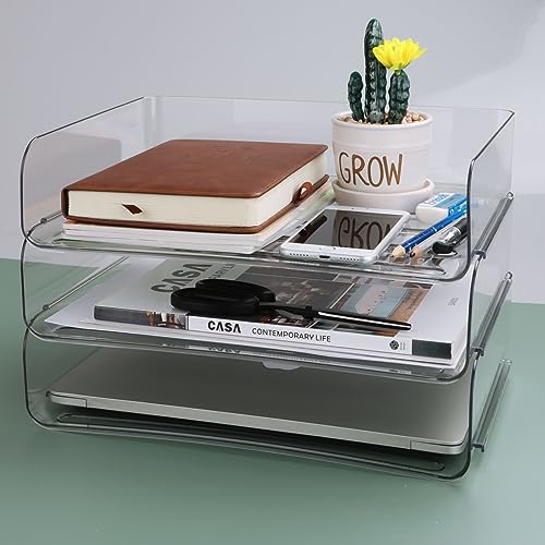SENENQU Vaschetta per lettere a 3 ripiani, formato A4, impilabile, formato A4, in plastica PET, trasparente, per casa, ufficio, scuola