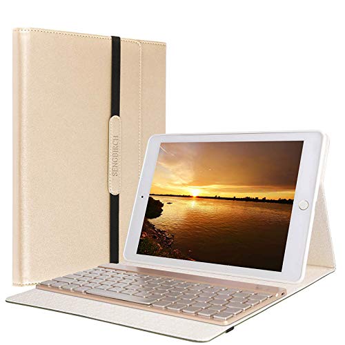 SENGBIRCH iPad 9.7 Custodia Tastiera, Custodia a Tastiera Italiana Staccabile Retroilluminata a 7 Colori Compatibile con iPad Air/Air 2, iPad PRO 9.7, iPad 9.7 2017/2018, Oro