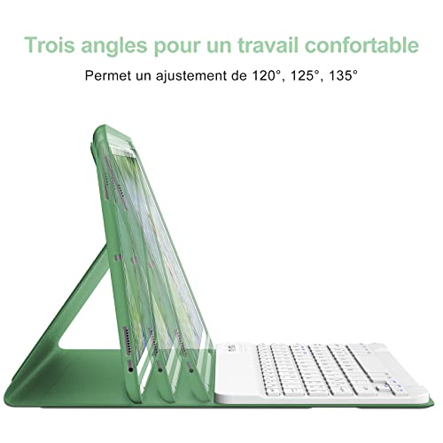SENGBIRCH Tastiera Cover per iPad 9/8/7a generazione 10.2 inch 2021/2020/2019, rimovibile tastiera Bluetooth senza fili per iPad 10.5 inch Pro 2017/2019 Air 3 Tastiera AZERTY francese, verde chiaro