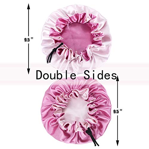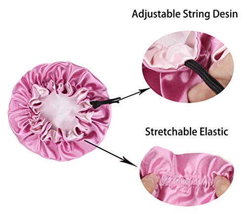 SENGTERM - Berretto da notte per bambini, in raso, doppio strato, regolabile, con fascia elastica, per la cura dei capelli (colore: rosa e viola)
