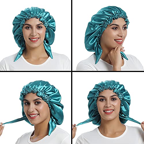 SENGTERM Berretto da Notte Seta,Cappello da Notte Raso,Fascia Elastica Cuffia Seta Dormire,Doppio Strato Cuffia Capelli Notte,per Nera Donna Capelli Ricci Capelli Ricci Lunghi