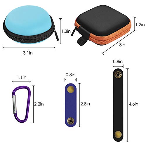 Senhai, custodia portatile per auricolari piccola, quadrata e rotonda, con moschettoni e 2 clip per cavo per cuffie, auricolari Bluetooth, U Disk SD