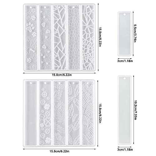 SENHAI 6 stampi per segnalibri fai da te in resina, rettangolari con foglie a forma di fiore, per resina epossidica (12 stili) con 30 nappe colorate, fai da te in 3D, decorazioni artigianali