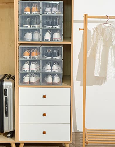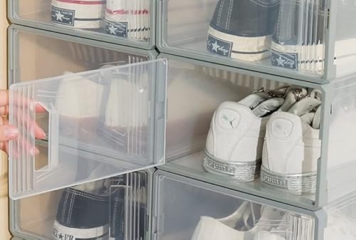 Senhill Set di 6 Scatole per scarpe impilabili trasparenti Contenitori per Scarpe plastica Organizzatori Porta Scarpe Pieghevoli scatole portaoggetti con coperchi (Grigio)