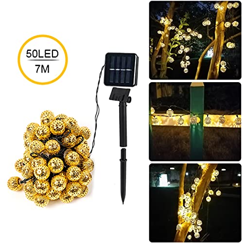 【50 luci solari marocchine 】La catena luminosa da esterno è alimentata dalla batteria integrata da 800 mAh. La lunghezza totale è di 7 m. Può anche essere ricaricata tramite pannelli solari che possono assorbire efficacemente la luce solare e convertire in elettricità. Queste luci calde e luminose aggiungeranno un tocco di glamour e raffinatezza per creare un ambiente piacevole e bello.
