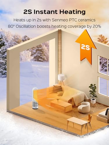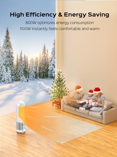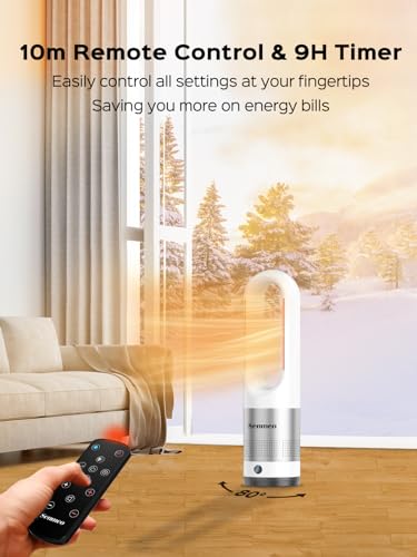 Senmeo Termoventilatore Ceramica, 1100W Stufa Elettrica Basso Consumo, Oscillante 90°, 11 Modalità, Doppia Protezione, Timer 9H, Telecomando da 10M, Termosifone Elettrico per Camera da Letto Ufficio
