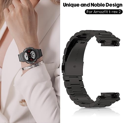 SenMore Metallo Cinturino Compatibile con Amazfit T-Rex 2, Ricambio in Acciaio Inossidabile per Smartwatch Amazfit T-Rex 2.
