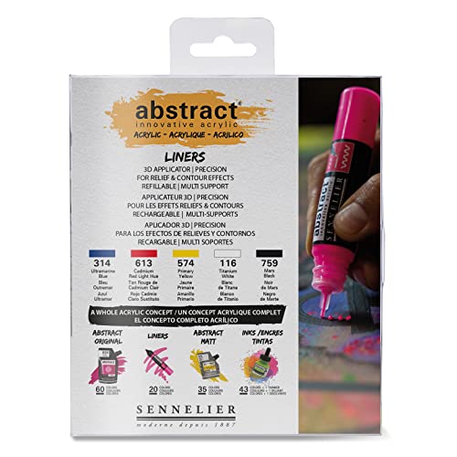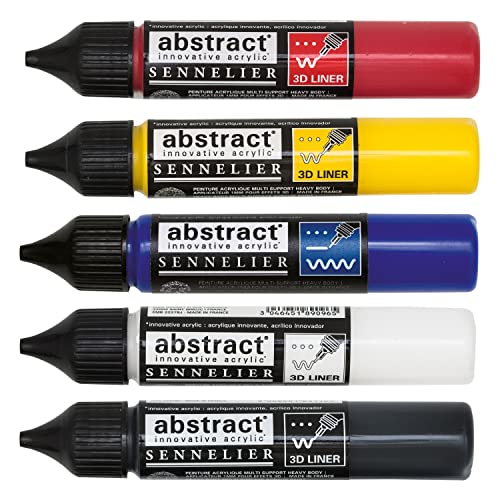 Sennelier Abstract Acrylic Discovery Liner Set, Includes 5-27ml 3D Liners, Primary Colors (10-121350-00)
