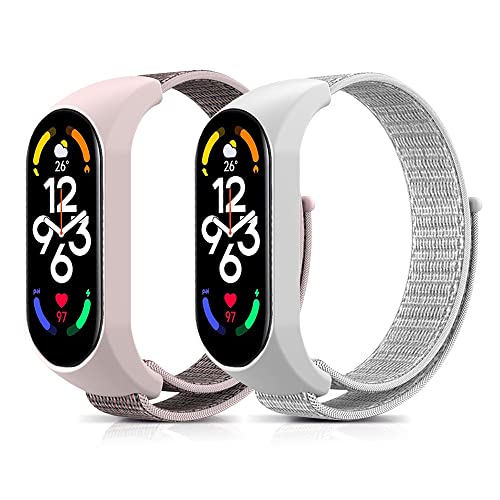 SeNool Cinturino Compatibile con Xiaomi Smart Band 7, [2 Pezzi] [Nylon Ricambio Bracciale] [Velcro, Leggero, Resistente], Band per Xiaomi Mi Band 7/Mi Band 6/Mi Band 5 - Bianco + Rosa