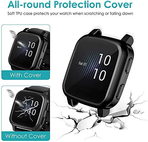 SeNool Cover Compatibile con Garmin Venu Sq/Venu Sq Music Custodia, Protezione Pellicola Custodia in TPU con Copertura Completa per Garmin Venu Sq/Venu Sq Music (Nero + Trasparente)