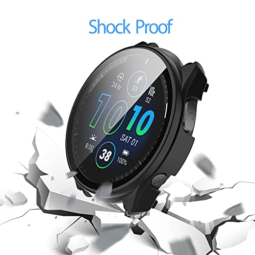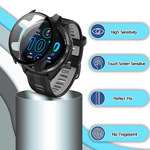 SeNool Custodia Compatibile con Garmin Forerunner 965, PC Cover Rigida con Vetro Temperato Protezione di Schermo, [Durezza 9H] Case Compatibile con Garmin Forerunner 965 - Nero