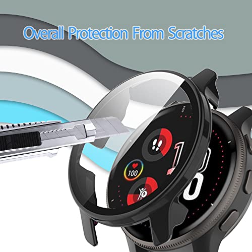 SeNool Custodia Compatibile con Garmin Venu 2 Plus, PC Cover Rigida con Vetro Temperato Protezione di Schermo, [Durezza 9H] Case Compatibile con Garmin Venu 2 Plus - Nero