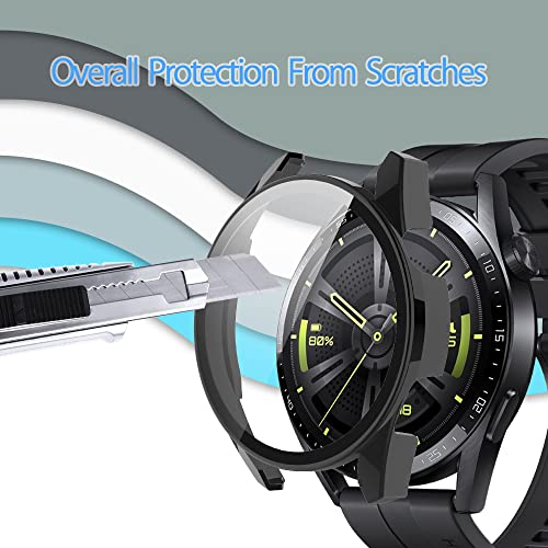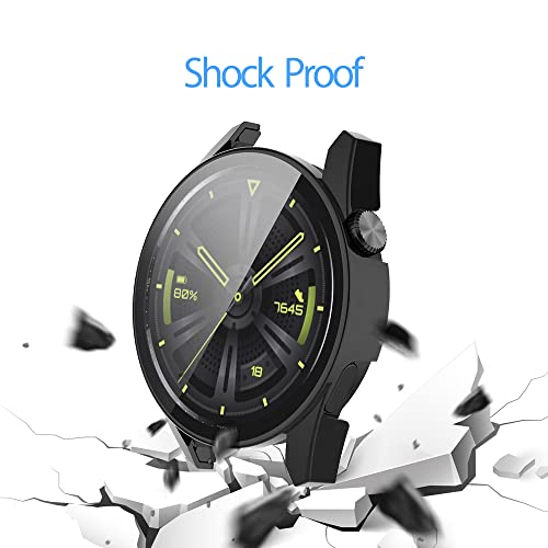 SeNool Custodia Compatibile con Huawei Watch GT 3 46mm, PC Cover Rigida con Vetro Temperato Protezione di Schermo, [Durezza 9H] Case Compatibile con Huawei Watch GT3 46mm - Nero