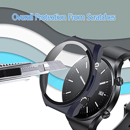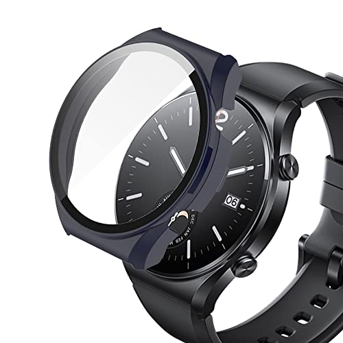 SeNool Custodia Compatibile con Xiaomi Watch S1, PC Cover Rigida con Vetro Temperato Protezione di Schermo, [Durezza 9H] Case Compatibile con Xiaomi Watch S1 - Blu