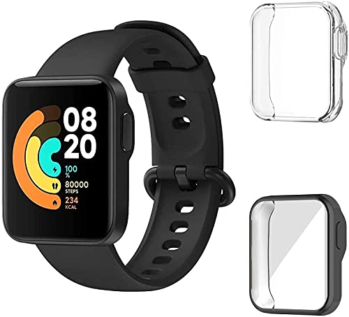SeNool [2 pezzi Custodia per Xiaomi Mi Watch Lite Custodia Protettiva Pellicola Protettiva Soft TPU Slim Antiurto Placcato Pellicola Protettiva per Xiaomi Mi Watch Lite Cover-Trasparente + Nero