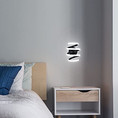 SENQIU Applique a Parete Led, 24W Nero Luce Fredda Semplice Creatività Lampada da Parete a Spirale, 6000K Moderna Lampada a Muro in Alluminio Interni Adatto Alla Camera da Letto, Corridoio, Salotto