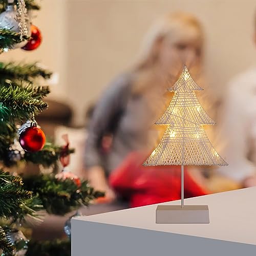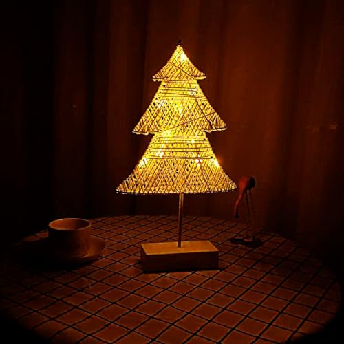 SENQIU Luce Notturna Bambini, Lampada da Notte a Forma di Albero di Natale in Rattan, LED Lampada da Comodino per Camera da Letto, Decorazione per Feste, Regali, 39CM in Altezza