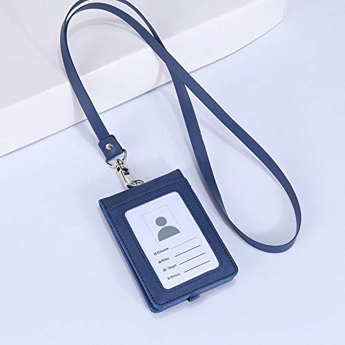 Senrise, porta badge con cerniera, in pelle sintetica di poliuretano, verticale, cordino da collo staccabile in poliuretano da 55,9 cm, blu