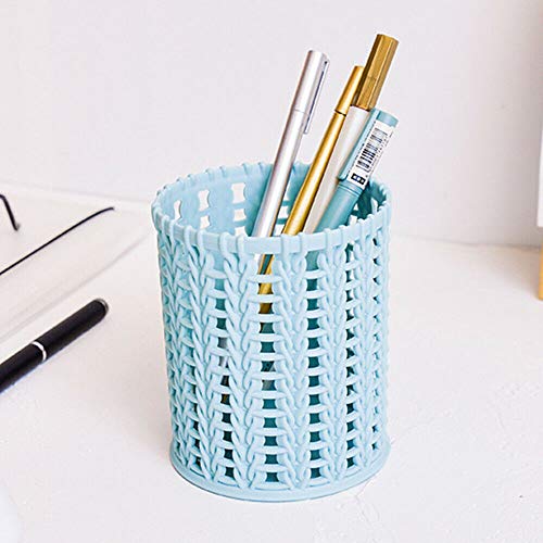 SENRISE - Portapenne per scrivania, 2 pezzi, rotondo, per ufficio, casa, organizer (blu)