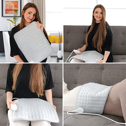 SENSEDE Cuscino riscaldante elettrico grigio argento, 40 x 30 cm, per schiena, braccia, gambe, collo e spalle con 3 livelli di temperatura, allevia dolore, dolori muscolari e lesioni