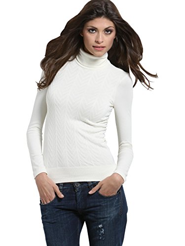 SENSI' Dolcevita Donna Manica Lunga Lana Senza Cuciture Seamless - Made in Italy (42-46, Crema)