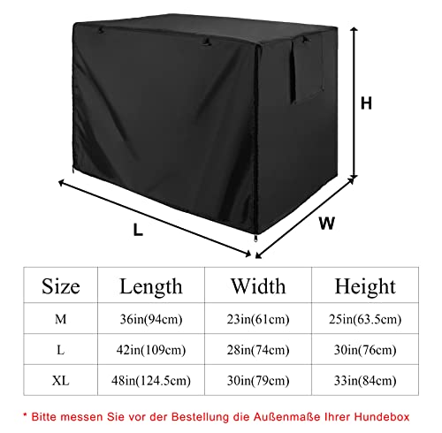 Nero, la dimensione M della copertura della cassa per cani 94 cm (lunghezza) x 61 cm (larghezza) x 63.5 (altezza). Si prega di misurare la gabbia del cane prima dell'ordine
