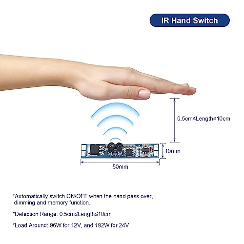 Sensore Movimento Mani Per Profilo Alluminio, Hand Sensor Switch, Con Memoria e Funzione Dimmer, 12V 24V 8A, Dimensione 50X10X2mm (1)