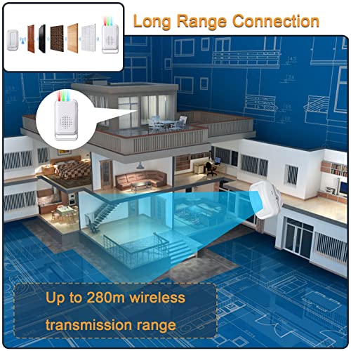 Ampia portata: la gamma di trasmissione del sensore rileva il movimento fino a 280 metri e il raggio di rilevamento del sensore a infrarossi di circa 2 ~ 8 m per tenerti avvisato. Quando il movimento viene rilevato dal sensore, il ricevitore emetterà un suono udibile e la luce LED lampeggierà. Puoi mettere il rilevatore del sensore di movimento al portico, alla galleria, alla cassetta postale e mettere il ricevitore in casa.