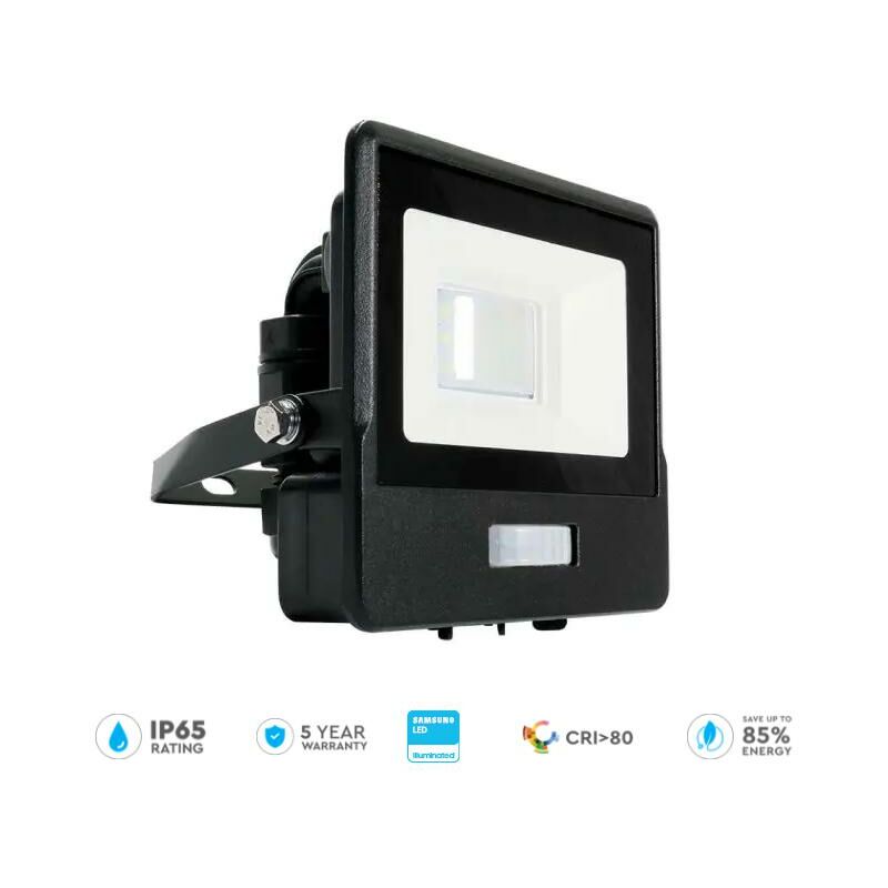 10W LED PIR Sensore Proiettore SAMSUNG Chip Corpo nero 6500K SKU: 20258: VT: VT-118S Caratteristiche del prodotto .Bianco freddo, naturale e caldo .Migliore Qualit del corpo in lega di alluminio .Resistente alla corrosione .Maggiore impermeabilit /ermeticit dell involucro in vetro, sigillato con gomma siliconica .Migliore Qualit dei componenti LED Samsung .Integrato di Driver a corrente costante .Integrato di Alimentazione, non necessario trasformatore esterno Installazione .Passi carrai .Giardini .Cartelloni .Campi sportivi .Parcheggi etc.~ Specifiche tecniche ~: Informazione generale = ~:Tipo LED=SMD Samsung Chip~:Vitamedia=25 000 ore~: Dati elettrici = ~:Potenza=10W~:Tensione=AC:220-240V~:Frequenza=50Hz~:Fattore di potenza=>0.9~: Dati tecnici luce = ~:Fascio Luminoso°=100°~:Colore della luce=Bianco~:Temperatura di colore=6500K~:Flusso luminoso (lm)=735 lm~:Indice di resa cromatica Ra=>80~: Dettagli corpo = ~:Colore=Nero~:Materiale=Alluminio~: Funzionalità