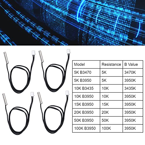 [SET 10 PZ IN 1] Include sensori di temperatura a termistore NTC da 10 pezzi, che possono essere utilizzati e sostituiti in qualsiasi momento. Con dimensioni compatte, adatte per la misurazione digitale della temperatura e il controllo di apparecchiature in piccoli spazi.