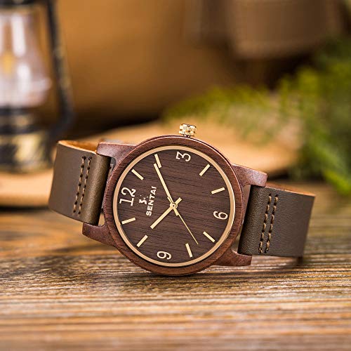 Sentai Orologio In Legno Uomo e Donna Orologio da Polso Analogico Al Quarzo da Con Cinturino in Pelle Orologi in Legno Idee Regalo Originali