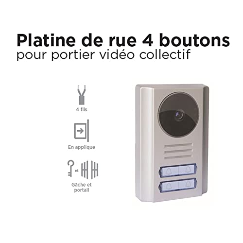 Platino stradale per abitazioni collettive: dotato di 4 pulsanti, questo giradischi per videocitofono a 5 fili è adatto per equipaggiare un piccolo edificio o una residenza di 4 abitazioni. I portaetichette dei pulsanti consentono di inserire il nome di ogni occupante