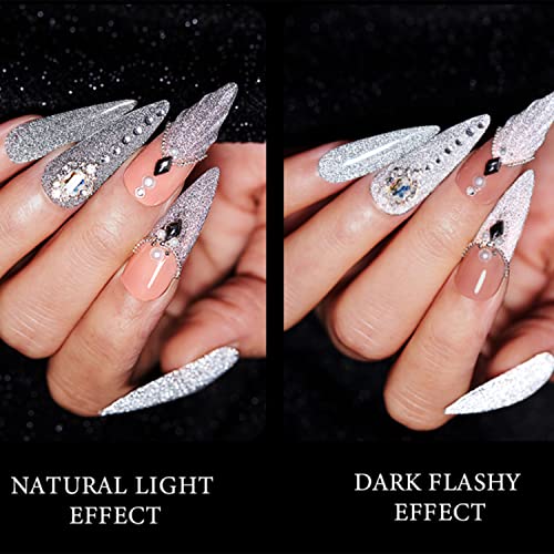 Senvenski Smalto Semipermanente per Unghie Kit Diamante Glitter Splendente Luccicante Stellato Bianca Nera Argento Magnetico Cat Eye Gel UV LED Vernice Manicure Nail Art Regalo (HS001)