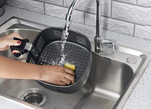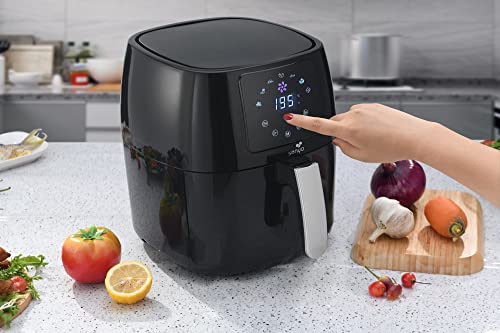 FACILE DA USARE: La friggitrice ad aria è dotata di piedini antiscivolo per garantire la stabilità, protezione dal surriscaldamento e una maniglia CoolTouch per proteggere dalle scottature. La sua ciotola ha un rivestimento antiaderente per una facile pulizia a mano o in lavastoviglie.