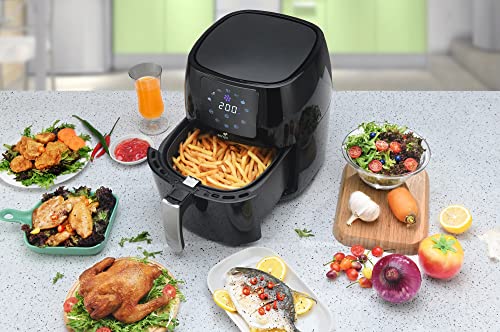 FRIGGITRICE AD ARIA CALDA: La cottura avviene grazie alla circolazione veloce dell'aria calda a differenza di una friggitrice tradizionale. Un cucchiaio d'olio è sufficiente per ottenere delle patatine croccanti. Godetevi una friggitrice inodore e patatine più sane con il 90% di grassi in meno.