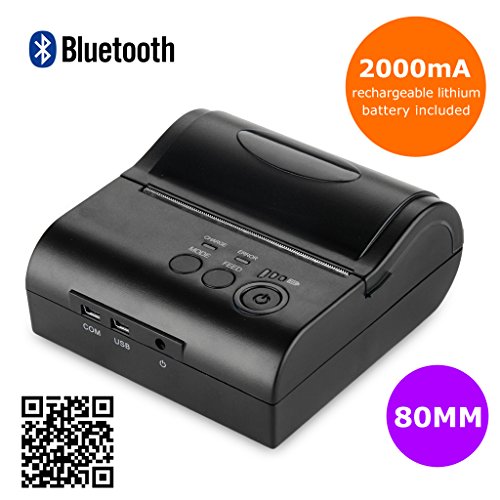 Senza Fili Bluetooth Stampante Termica Dot Portatile Wireless POS Stampanti a Matric 80mm Ricevuta Scontrino USB ESC/POS/STAR per Android Cellulare o Tablet (80mm)
