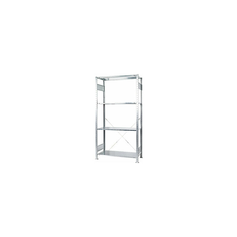 Scaffale a ripiani, alt. x largh. 2000 x 1006 mm, scaffale aggiuntivo, profondità ripiano 400 mm. Fornitura = preassemblato, montaggio finale a cura del cliente. Tipo di scaffale = canalina aggiuntiva. Numero ripiani = 4 pz. Profondità ripiani = 400 mm. Portata ripiani = 150 kg. Altezza scaffale = 2000 mm. Larghezza totale = 1006 mm. Portata campata = 1300 kg. Struttura = sistema a innesto. Colore montanti = zincatura. Larghezza ripiani = 1000 mm. Profondità totale = 436 mm. Materiale = acciaio. Superficie = zincatura. Passo di regolazione altezza ripiani = 25 mm. Colore ripiani = zincatura. Superficie ripiano = zincatura. Materiale ripiani = acciaio. Spessore ripiani = 25 mm. Larghezza montanti = 50 mm. Profondità montanti = 45 mm. Altezza scomparti = 600 mm. Montaggio rapido grazie ai ripiani MULTIplus facilmente inseribili. Telaio con profilo a T preassemblato. Con compensazione di CO₂ al 100%.