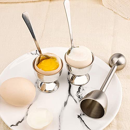 Materiali di Alta Qualità: Il cappello a cilindro per uova è realizzato in acciaio inossidabile di alta qualità, resistente e durevole e può essere utilizzato a lungo.È adatto per uova sode e sode o uova crude, dando a te e alla tua famiglia un colazione salutare.
