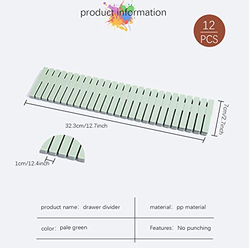 JSF Separatori per Cassetti in Plastica, 12 Pezzi/ 32.4 x 7cm, Divisori per Cassetti Regolabili - Organizzatore per Cassetti per Ufficio, Bagno, Cucina o Camera da letto (verde)
