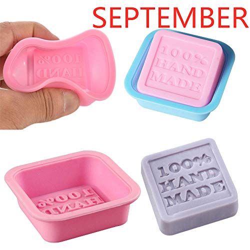 September, set da 10 pezzi di formine da sapone con scritta 100% Hand Made, per dolci, caramelle, cioccolata