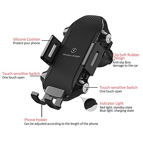⚡【Ampia Compatibilità】Il porta per cellulare con caricatore wireless per auto è adatto per smartphone abilitati Qi. Ricarica da 7,5 W compatibile con iPhone 14 pro max/14 pro/14 Plus/14/13 pro max/13 pro/13/12 Pro Max/12 Pro/12/11 Pro Max/11 Pro/11/SE (2a generazione) /XS Max/XS /X/XR/8 Plus/8. La ricarica rapida da 15 W è adatta per LG V50/V40/V30+/V30/V40, ThinQ G8/G8S/G7, ecc. 10 W è adatta per Samsung Galaxy S20+/S20/Note 10+/Note 10/S10+/S10 ecc. Ricarica da 5 W alimentazione per altri telefoni abilitati Qi. (Nota: verificare se il cellulare supporta la ricarica wireless.)