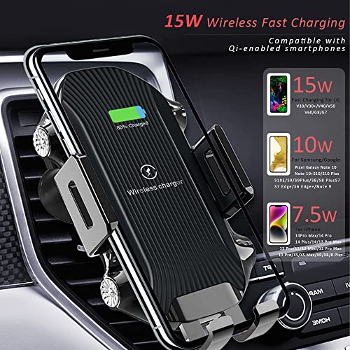 Sequpr 15W Caricabatterie Wireless da Auto per Cellulare, Ricarica Rapida Qi Auto, Caricatore Wireless Supporto Cellulare, Caricatore Porta Cellulare Auto per iPhone Samsung LG Huawei ecc Nero