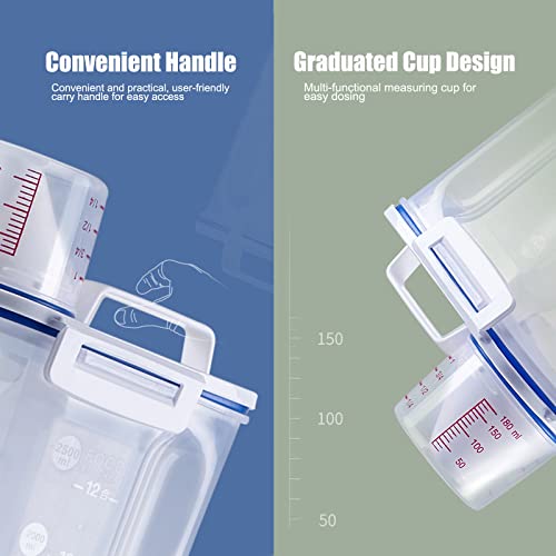 3.【Pratico e conveniente】Il corpo del contenitore addensato è resistente e non facile da danneggiare. Il corpo della botte è in scala ed è dotato di un misurino e di un beccuccio in scala. Misura gli alimenti con maggiore precisione e non spreca il cibo.