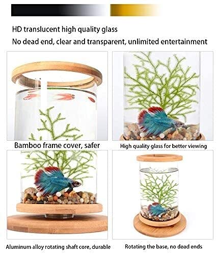 AY Serbatoio di pesce pesci acquario pesce desktop bottiglia ecologica bottiglia creativa ufficio temperato micro-cilindro rotante camera da letto pesce serbatoio betta mini piccolo serbatoio di pesce