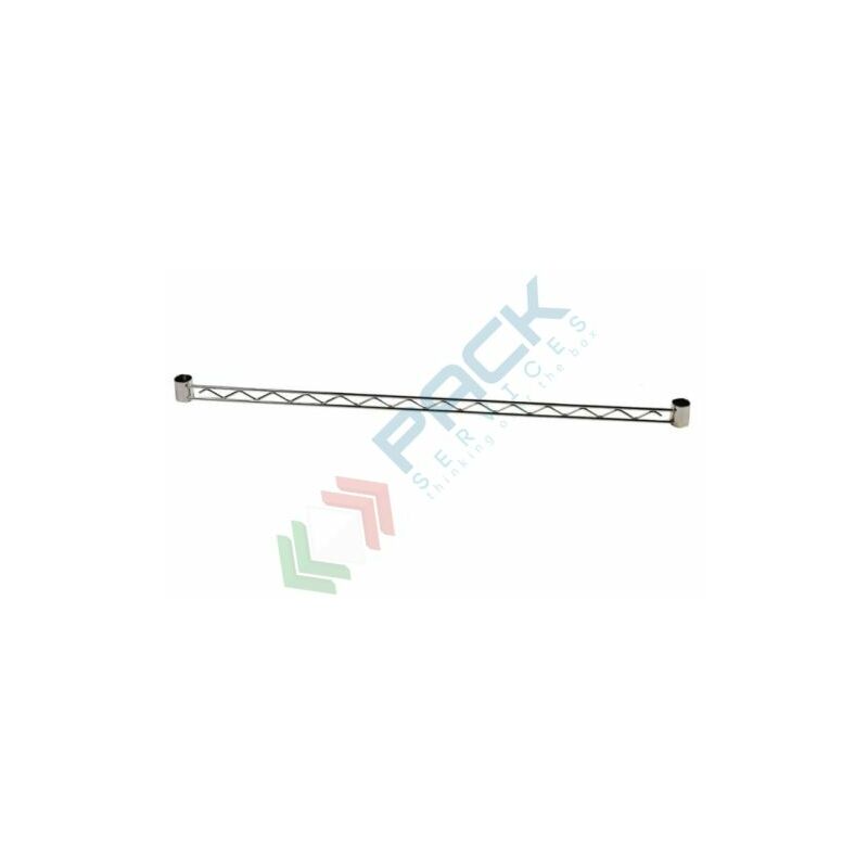 Controventatura in acciaio cromato, Mis. 35 cm, completa di guancette per il fissaggio ai tubolari. Può essere regolata all'altezza desiderata in corrispondenza delle apposite scanalature presenti sui tubolari montanti (ogni 2,5 cm). Altezza anello: cm 4. Utile per dare maggiore stabilità alla scaffalatura. Consigliata in caso di distanza tra i ripiani superiore a 1 mt, o con i ripiani in legno.