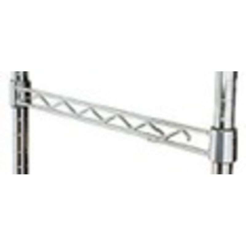 Controventatura in acciaio cromato, Mis. 90 cm, completa di guancette per il fissaggio ai tubolari. Può essere regolata all'altezza desiderata in corrispondenza delle apposite scanalature presenti sui tubolari montanti (ogni 2,5 cm). Altezza anello: cm 4. Utile per dare maggiore stabilità alla scaffalatura. Consigliata in caso di distanza tra i ripiani superiore a 1 mt, o con i ripiani in legno.