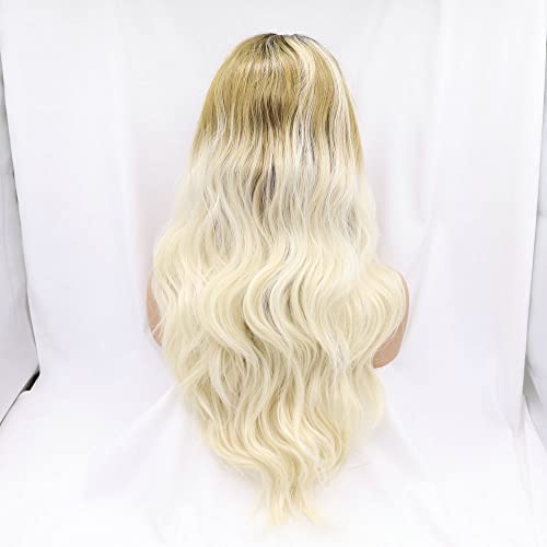SereneWig Drag Queen Cosplay radice marrone scuro biondo ombre gloden capelli ricci lunghi da donna sintetico pizzo frontale parrucca per donne senza colla Cap