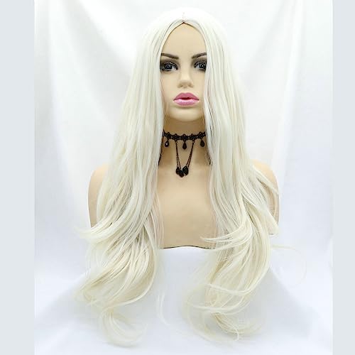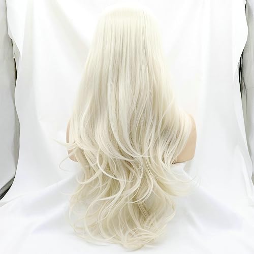 SERENEWIG Parrucca da donna bionda senza pizzo, ondulata, senza colla, capelli lunghi, biondo pastello, sintetica, da donna, drag queen