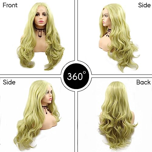 SereneWig Parrucca sintetica da donna con pizzo frontale, 61 cm, verde pastello Matcha, per uso quotidiano, capelli lunghi ondulati, per cosplay, feste, festival, colore verde